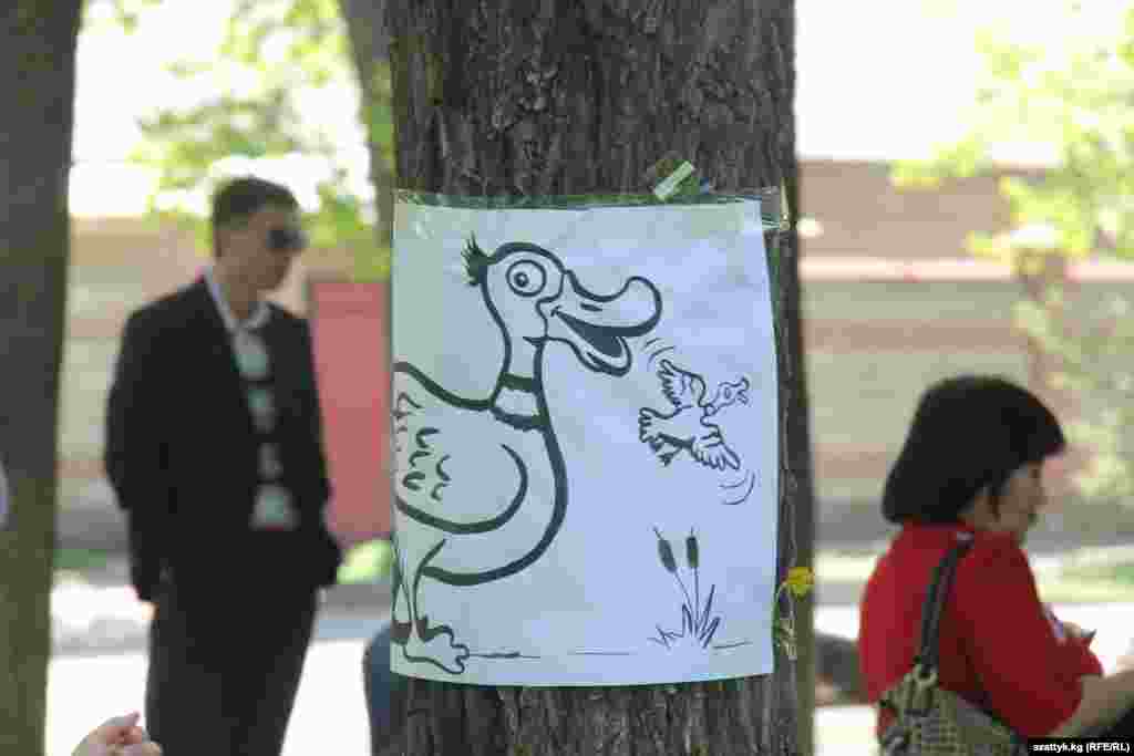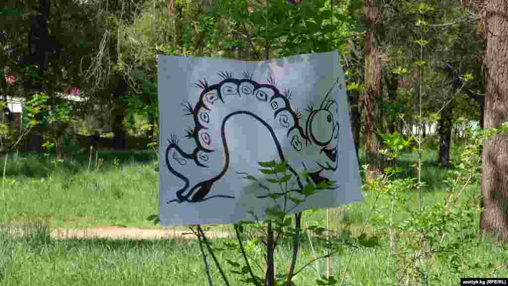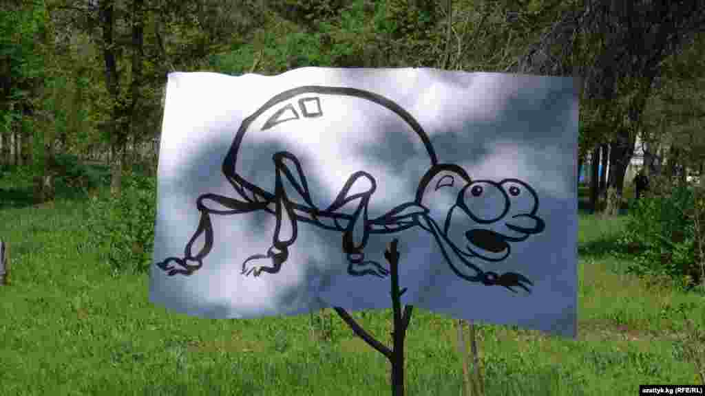 Уюштуруучулар алгач аллеядагы бактарга өрдөктүн, кумалактын сүрөттөрүн илип чыгышты. Сценарий боюнча аллеяны журналистика мейкиндиги деп, андагы сүрөттөр журналистикадагы терс көрүнүштөр катары каралган.