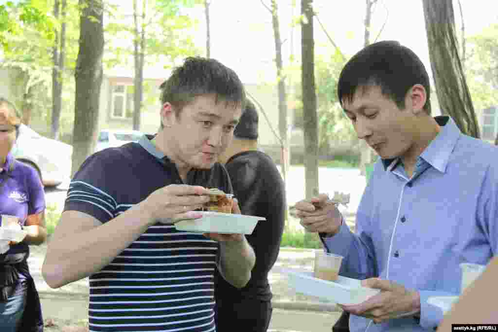 Эң кызыгы акция соңунда журналисттерге өрдөктүн бышырылган эти таратылды.