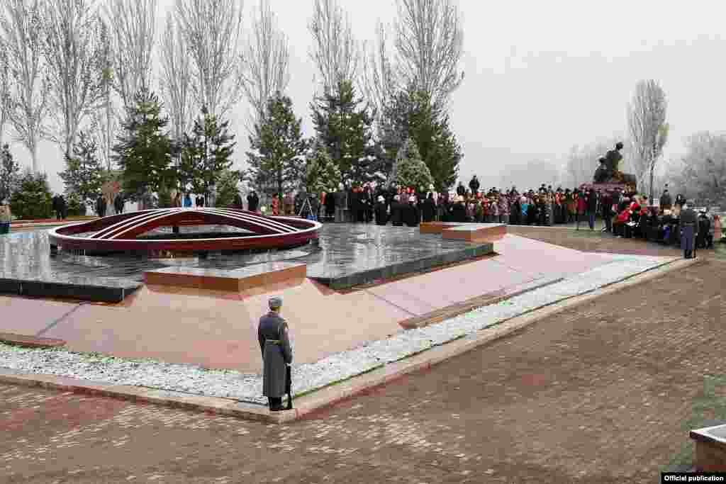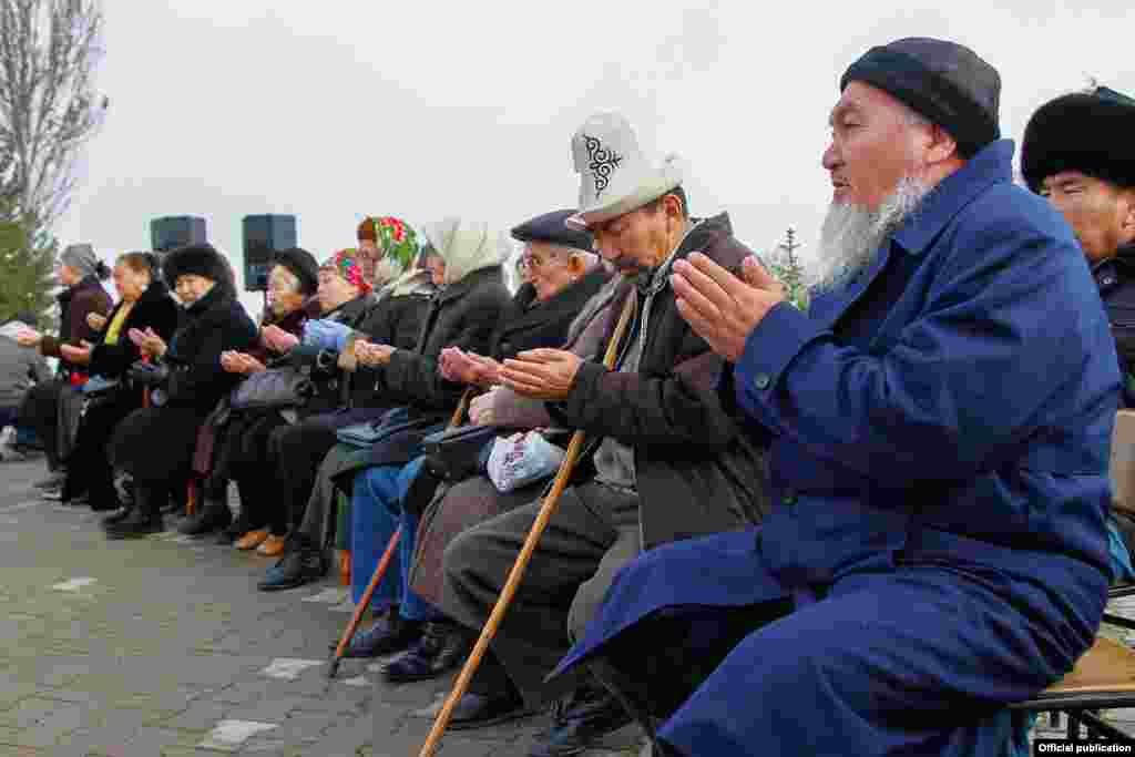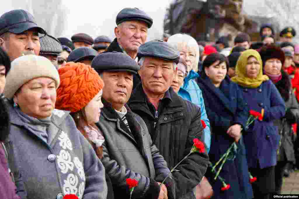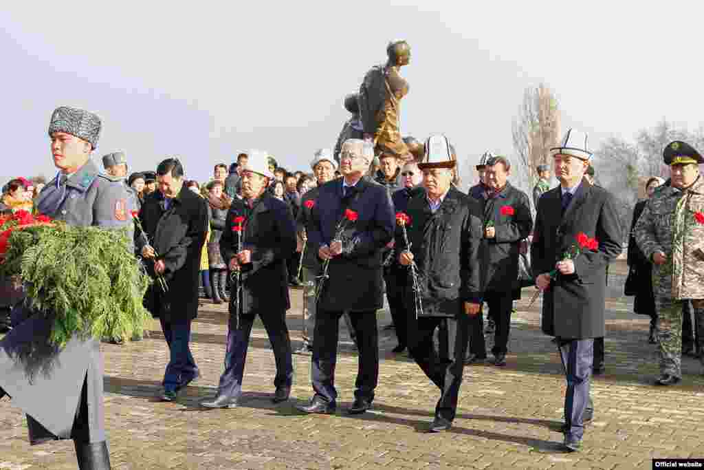 «Ата-Бейит» мемориалдык комплексинде Сталиндик репрессия курмандыктарын эскерген митинг-реквием өттү. Ага вице-премьер Тайырбек Сарпашев, калаа башчысы Кубанычбек Кулматов баш болгон расмийлер жана репрессия болгондордун жакындары катышты. (Cүрөттөр Мэриянын басма сөз кызматыныкы)