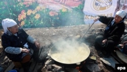 Сүмөлөк кайнатуу салтанатын оюн-зооктор, улуттук оюндар коштоп, улуттук тамак-аштар даярдалды.  Сүмөлөк майрамы Бишкекте былтыр да уюштурулуп, 11 казанда бышырылган.  (NT)