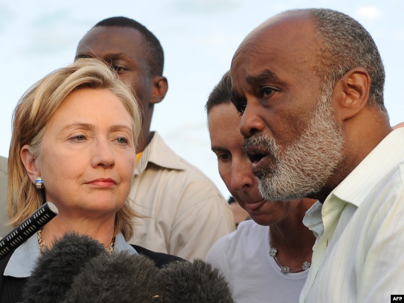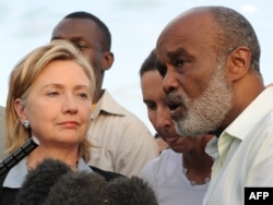Хиллари Клинтон Гаитинин президенти Рене Превал менен сүйлөшкөндөн кийин өлкөнү бүлгүндөн толук калыбына келтирүү үчүн  Вашингтон жардамын аябасын айтты: