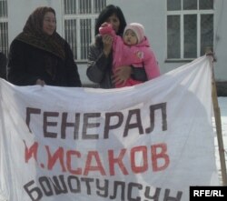 - Куловдун темирдей генерал экенин билбеймин, бирок Исмаил Исаковду жолборстой күчтүү, эрки бекем, накта элдик генерал катары эсептейм. Аны туура эмес камашты. Сотторго – наалат! Курманбек Бакиев, Исаковду бошотуп коюңуз, антпесеңиз, мендей энелер толтура, аны коргоо үчүн бала-чакабызды жетелеп алып революцияга аттанабыз.