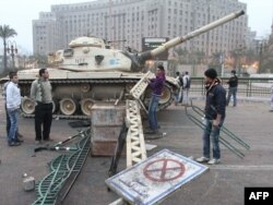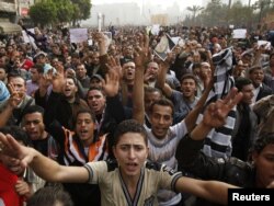 Каирдиктер аскерлерге айбат кылууда. 2011-жылдын 31-январы. AFP.
