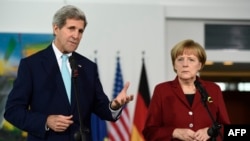 Ошол эле күнү Керри немис канцлери Ангела Меркел менен жолукту. Вашингтон-Берлин алакасы 2013-жылы америкалык атайын кызматтардын немис жергесинде жүргүзгөн тыңчылык аракеттери, анын ичинде Меркелдин телефону тыңшалгандан кийин салкындай түшкөн.