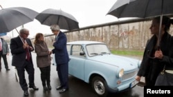 22-октябрда Штайнмайер менен Керри немис орто окуу жайларынын студенттери менен жолугушуп, Берлин дубалы 1990-жылы кыйрагандан кийин мемориал болуп калган комплекске гүл чамбар коюшту.