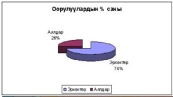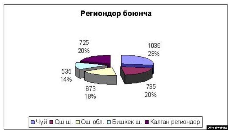 Ошентип аталган дарт менен расмий катталгандардын саны Кыргызстан боюнча 3704 кишиге жетти. Алардын 74 пайызын эркектер, 26 пайызын аялдар түзөт.