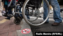 Майыптар Өкмөт үйүнүн алдында “Бөгөтсүз мектеп” деген акция өткөрүп, аларга мектептерде жана университеттерде билим алуу үчүн шарт керектигин жарыялашты.