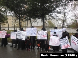 Баласына ВИЧ жуккан энелердин Оштогу нааразылык акциясы, 14-ноябрь, 2011-жыл