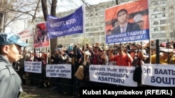 18-июнда кечке жуук “Мекен шейиттери”, “Айкөл Ала-Тоо” уюмдарынын 100гө чукул өкүлү Бишкек шаар сотунун алдына чогулуп, адилетсиз өкүм чыгардыңар деп нааразы пикирин билдиришти. Алардын бири: