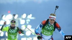 21-февралда Красная полянадагы «Лаура»  тоо лыжа айдыңында кыз-келиндер арасындагы  биатлон боюнча 4 спортчудан катышкан  24 км. аралыкка эстафеталык жарыш, мылтыктан таамай атууда украиналык кыз-келиндер марага биринчи келди. Бул Украинадагы кандуу кагылышуудан кийинки бирден бир жагымдуу кабар болду.  Сочи олимпиадасында командалык эстафетасынын чемпиондору болгон айымдарды айта кетели. Алар дүйнө чемпиону Олена Пидгрушина,  Юлия Жима жана дүйнө кубогунун жеңүүчүлөрү, эгиздер Валия менен Вита олимпиада чемпиондору аталды. Орусиялык айымдар экинчи, норвегиялыктар үчүнчү орундарды камсыз кылды.