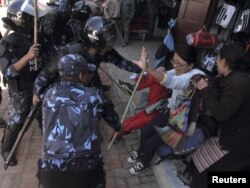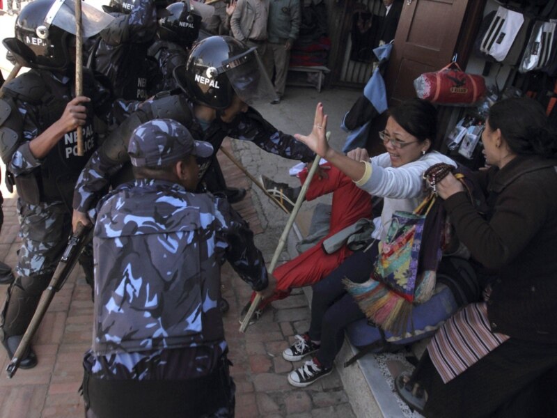 Непал полициясы анти-кытайлык ураандарды чакырган марштын катышуучуларын камакка алууда. Катманду. 10-март 2011